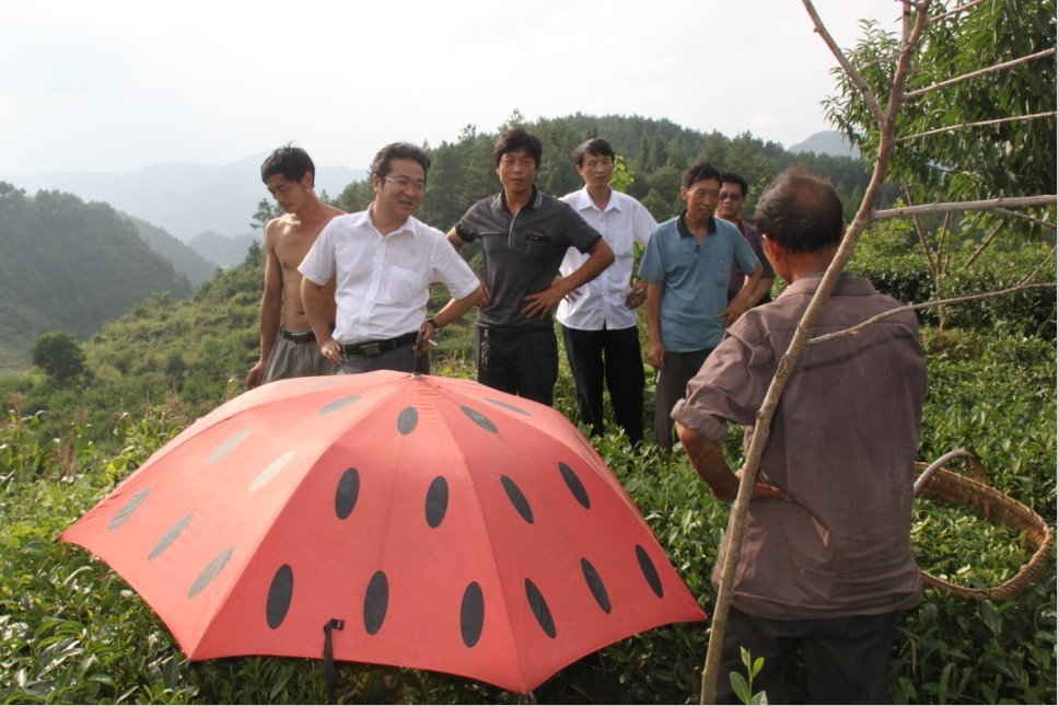 在廖明噸的茶園里,金循總經(jīng)理發(fā)現(xiàn)了不少問(wèn)題,提出了很多意見,并當(dāng)場(chǎng)電話聯(lián)系農(nóng)科專家,為廖明噸解決技術(shù)難題。