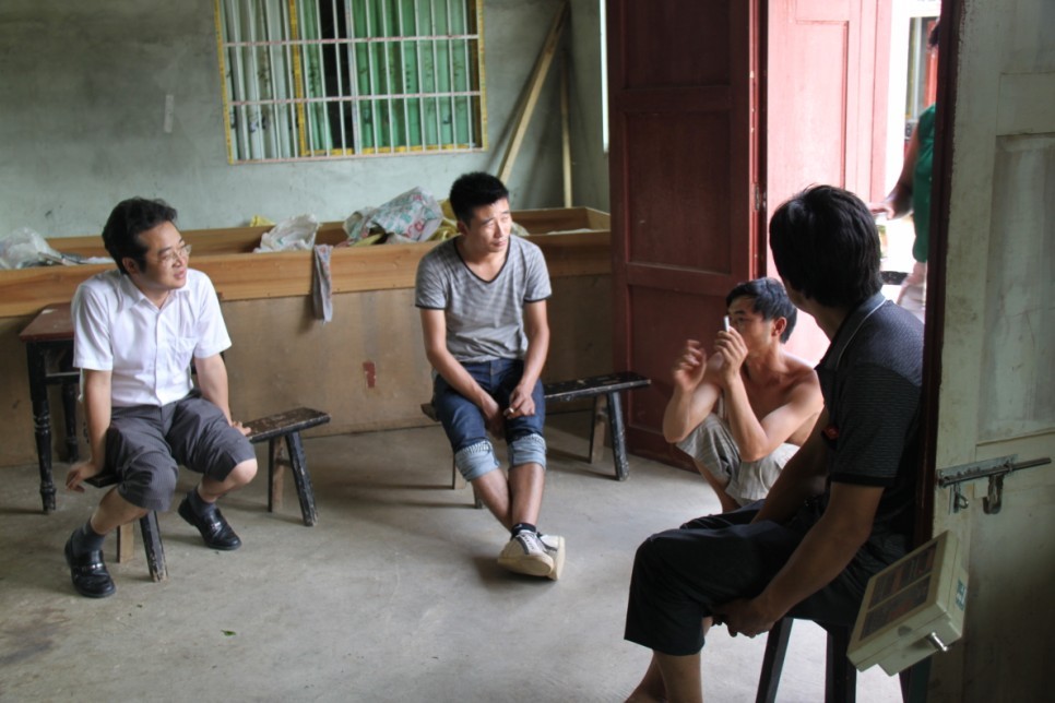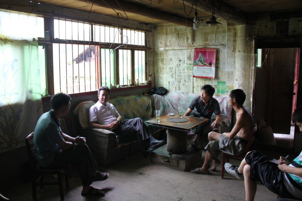 圖六:在萬(wàn)興村奮勇村民組另一茶葉加工大戶張恩國(guó)(左一)家,金循總經(jīng)理正在與村干部和村民們座談。