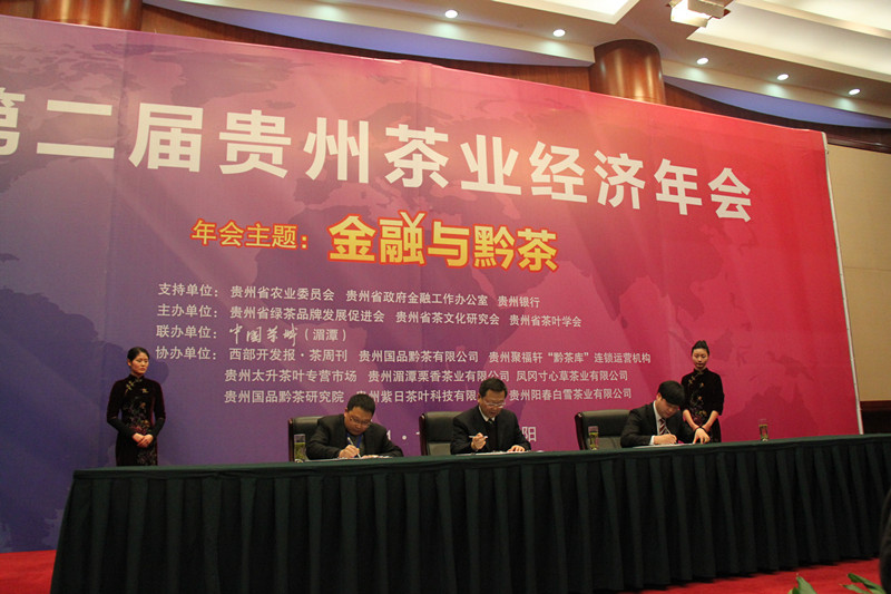 此次年會的一個亮點是 “金融助茶”,貴州銀行監事長張洪生生在會上說道: “作為貴州金融機構代表的貴州銀行,將分別與貴州省農委、貴州省綠茶品牌發展促進會以及企業簽署戰略協議。根據協議貴州銀行未來將提供100億以上資金扶持貴州茶產業,并共同打造以茶資源交易為主的現代化茶葉交易中心,此外還將培育貴州100家以上的最具市場競爭力的茶葉企業,并在未來3到5年,重點扶持貴州湄潭-中國茶城市場建設,使其成為中國茶葉交易中心、電子商務交易平臺、區域性茶葉專業交易市場,并為平臺交易90%以上的小微客戶群體提供全產業鏈交易金融服務等。”