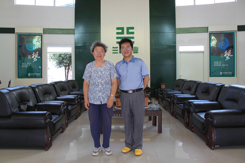 圖:產品展示廳前,金循給王遵明女士介紹“蘭馨”系列產品