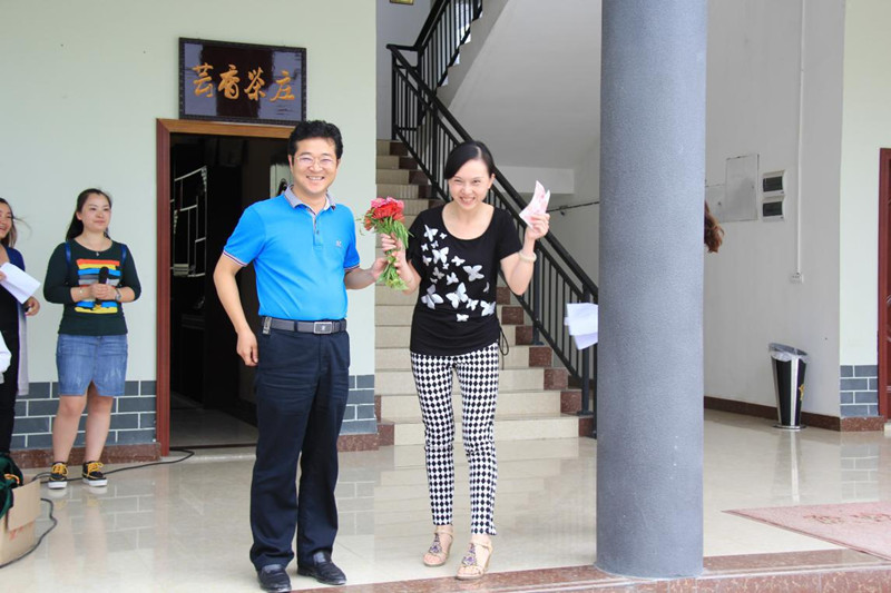 到達(dá)活動最終戰(zhàn)地蕓香茶業(yè),吃過午飯,稍作休息后,就開始了游戲項目。“蘭馨好聲音”的激烈角逐;茶葉知識問答的樂趣搶答;歡樂無限的“你比我猜”、“蘿卜蹲”;充滿團(tuán)隊感的“單腳火車跑”等游戲,把整個活動推到了最高潮。
