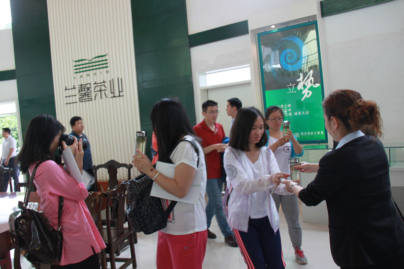 5月10日,貴州茶香行大型主題采訪活動記者一行,來自全國各地網媒記者60余人來到蘭馨公司參觀調研。期間,蘭馨公司綜合部副經理陳琴帶領網媒記者先后參觀了公司制茶生產車間、電子商務部等。