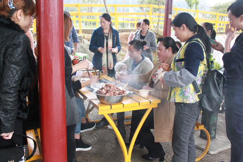 職工們邊吃邊聊,暢所欲言,同事情誼不斷升溫。