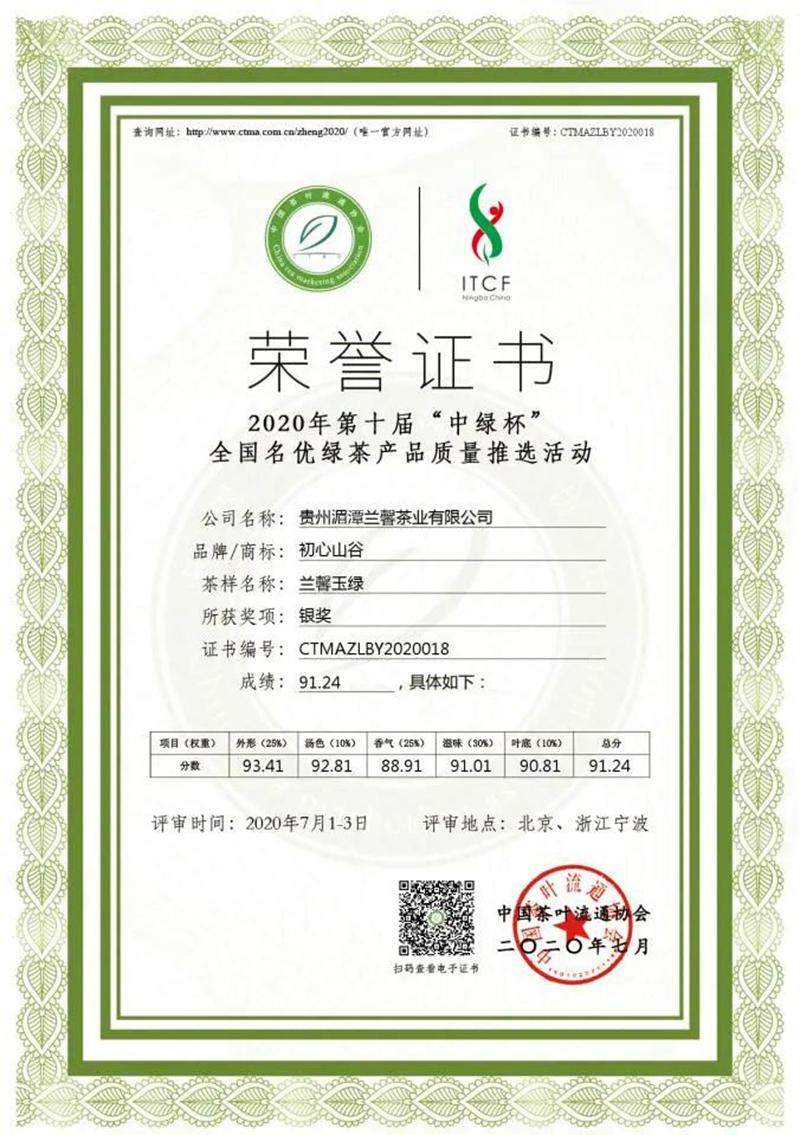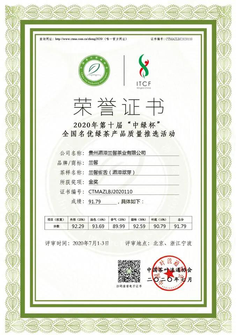 蘭馨茶業(yè)榮獲一枚金獎(jiǎng)、一枚銀獎(jiǎng),分別是: