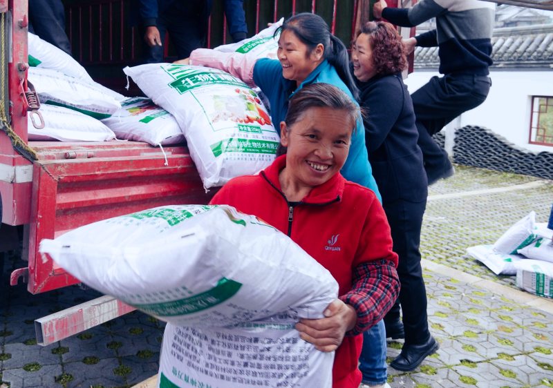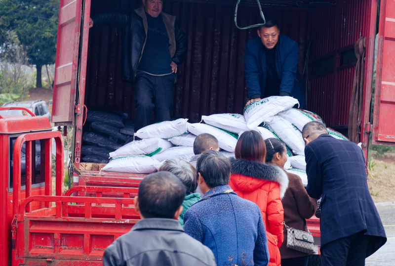 村民們開著小三輪或小貨車陸陸續(xù)續(xù)前來領(lǐng)取肥料,82噸有機(jī)復(fù)合肥送到近200戶農(nóng)戶手中。大家欣喜不已,紛紛表示感謝蘭馨茶業(yè)的關(guān)懷支持。