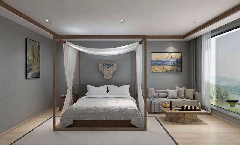 浪漫的輕紗飄過,落地式的透明窗,抬眼便瞧見綠色的世界。