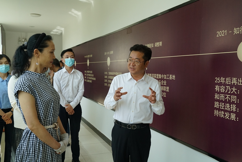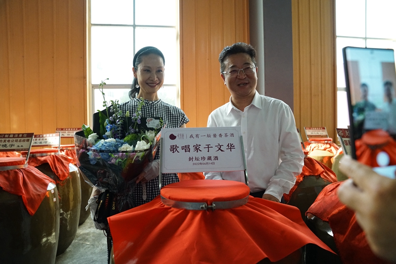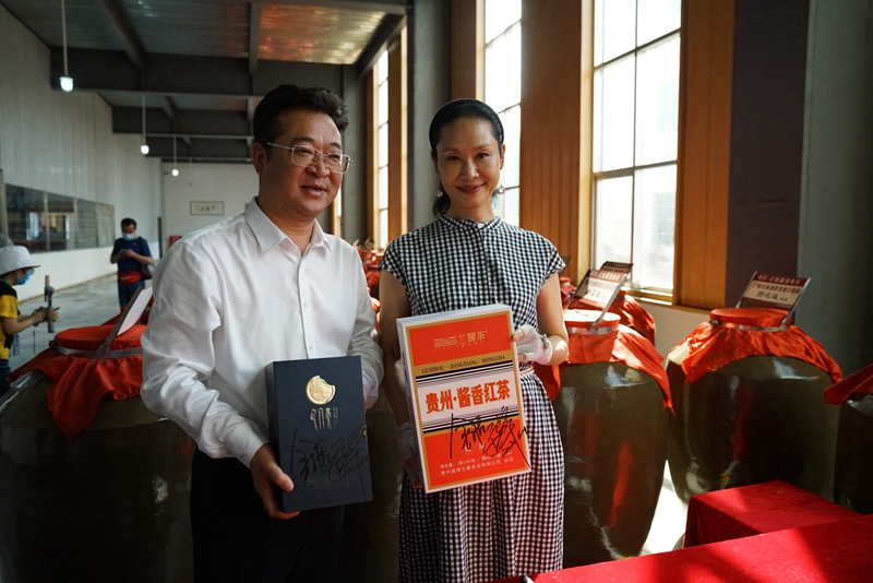 在蘭馨茶業,董事長金循向于文華老師詳細介紹了公司發展歷程、茶葉品類、茶葉制作工藝、茶葉銷售等情況。于文華老師認領了“我有一壇醬香茶酒”專屬封壇珍藏茶酒“吃月亮”。