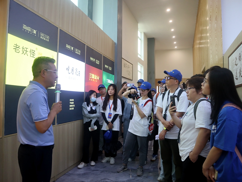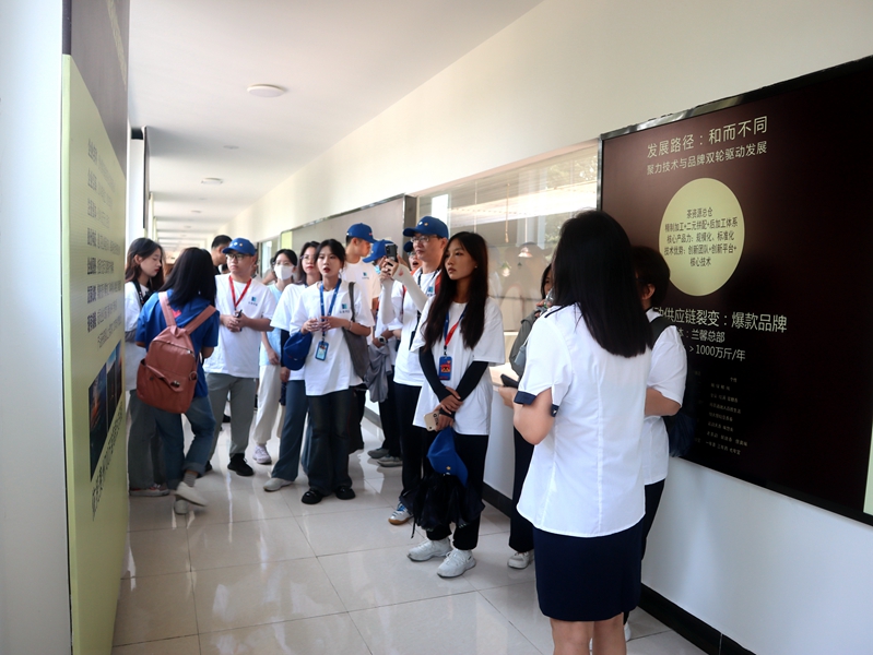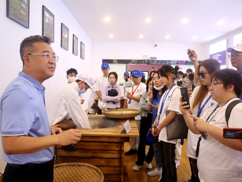 參觀現場,蘭馨茶業工作人員向頭條學堂師生介紹了公司發展歷程,董事長金循為大家詳細講解茶葉及茶酒制作工藝、茶葉品類等情況。