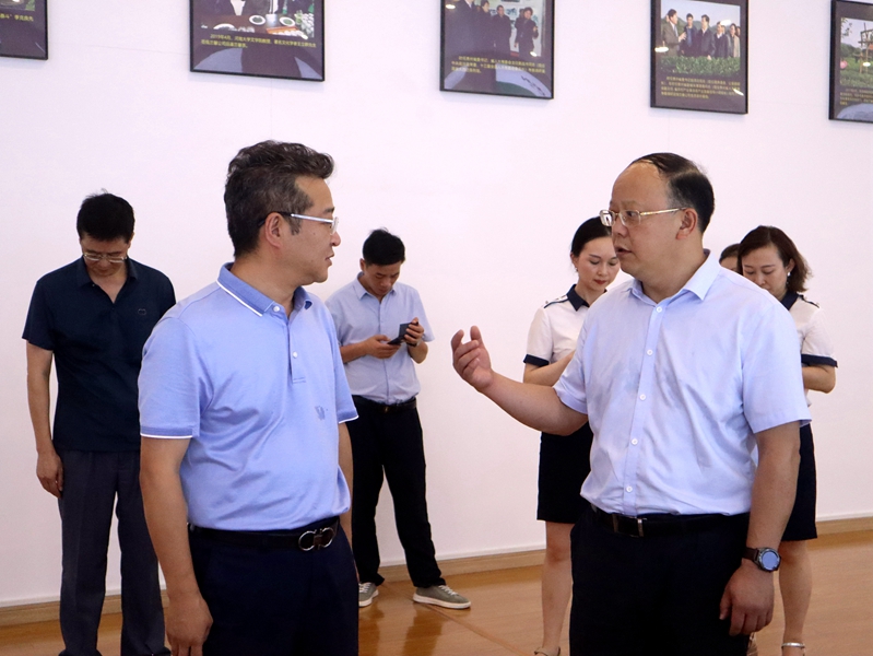 8月25日,貴州省工業(yè)和信息化廳黨組成員、副廳長汪家強率隊蒞臨蘭馨茶業(yè)走訪調(diào)研,省工信廳中小企業(yè)處處長葉興峰等省、市、縣相關負責人參加調(diào)研。董事長金循熱情接待了來訪領導。