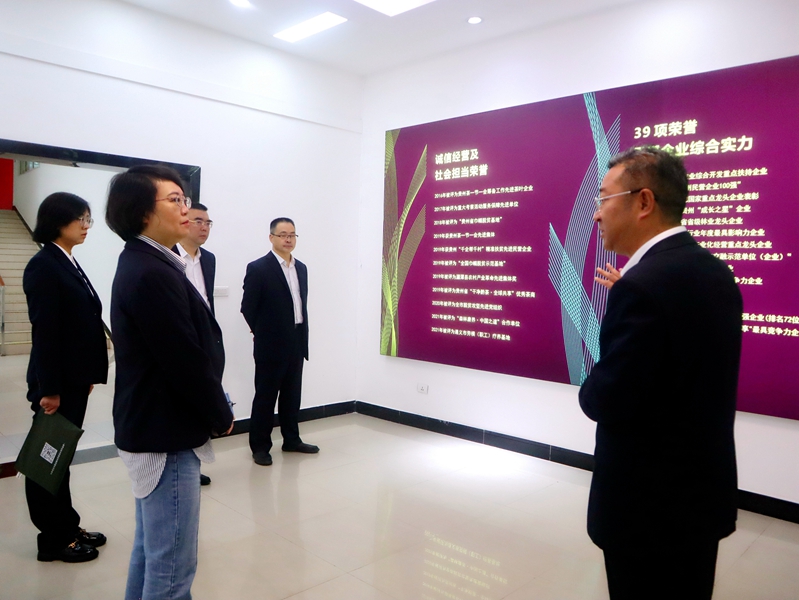 在董事長金循陪同下,調(diào)研組一行走進(jìn)公司精制車間、包裝車間、文化展示廳、產(chǎn)品展示廳、圣心茶酒廠,金循詳細(xì)介紹了蘭馨茶業(yè)發(fā)展歷程、經(jīng)營現(xiàn)狀、品牌矩陣、茶葉及茶酒工藝等情況。