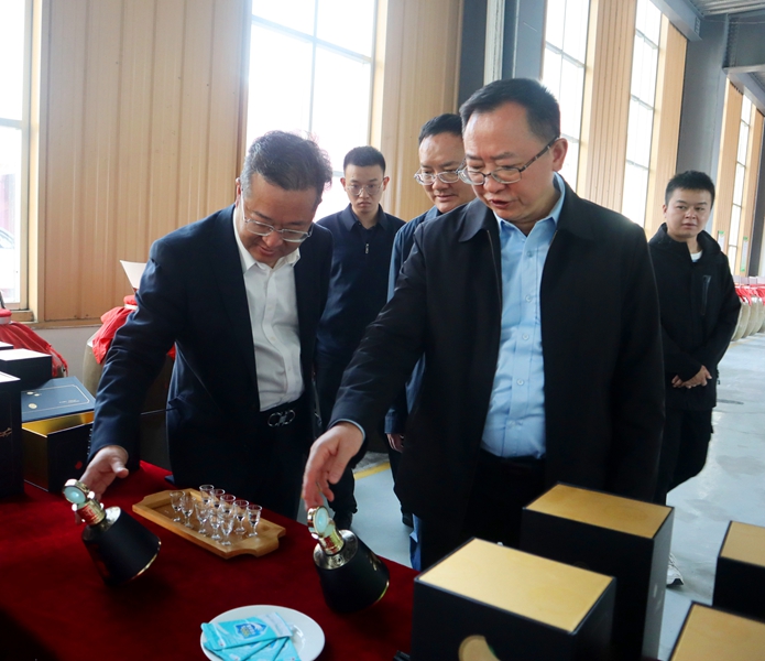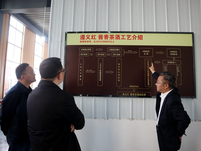 在董事長金循陪同下,調(diào)研組一行走進(jìn)公司精制車間、包裝車間、文化展示廳、圣心茶酒廠參觀考察。