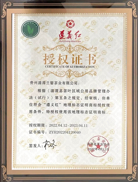 蘭馨茶業(yè)是“遵義紅”公用品牌授權(quán)企業(yè)及“遵義紅”五星級(jí)標(biāo)識(shí)使用權(quán)企業(yè)。