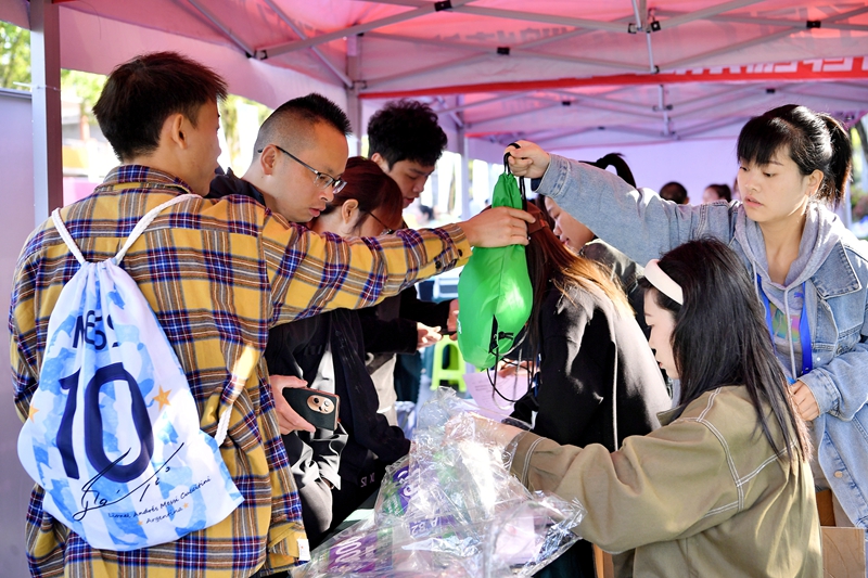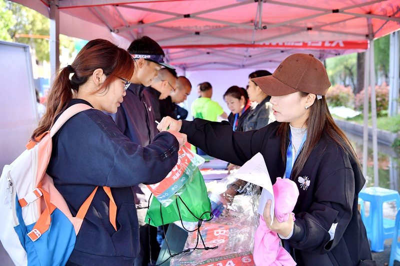 比賽現場,蘭馨茶業職工為選手們發放參賽物料