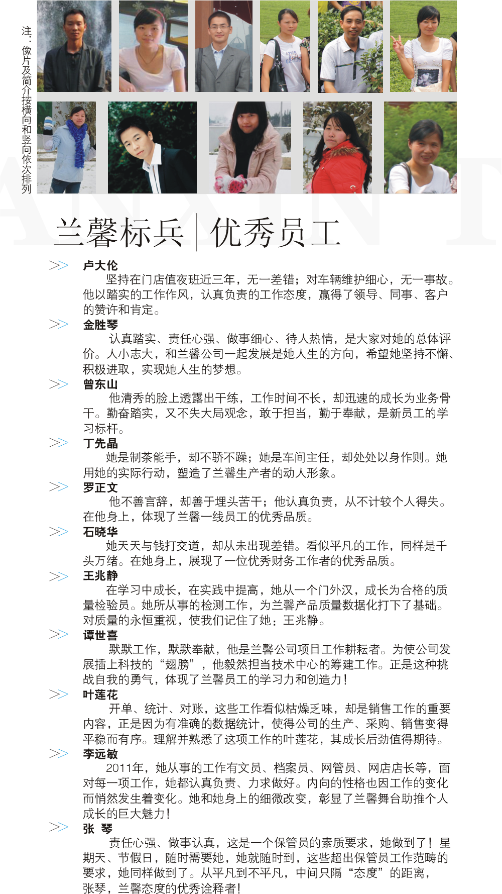 蘭馨茶業(yè)2011年度優(yōu)秀臉譜
