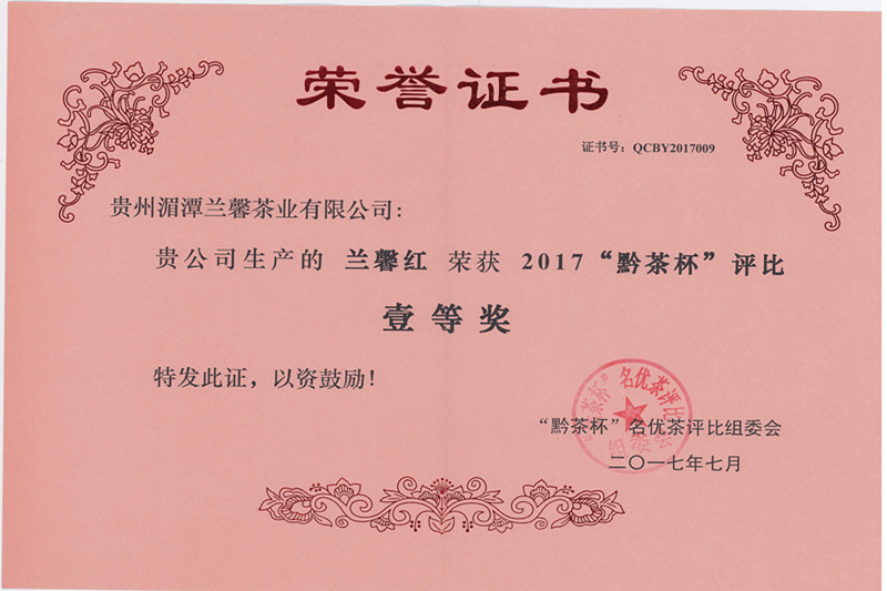 喜訊:蘭馨紅、蘭馨雀舌在2017“黔茶杯”名優茶評比中喜獲佳績!